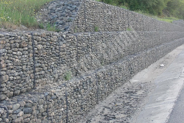 Los gabiones de malla hexagonal de doble torsión son jaulas rectangulares construidas con malla de alambre hexagonal de doble torsión y rellenas con rocas o piedras de cantera de tamaño adecuado. Los gabiones constituyen un método consolidado, robusto y técnicamente probado para el control de la erosión y la retención de tierras. La resistencia de los gabiones se deriva de una malla hexagonal de doble torsión de alambres de acero. En caso de daño accidental o rotura de uno o más alambres, la configuración de alambre de doble torsión garantiza una reducción mínima de la resistencia.