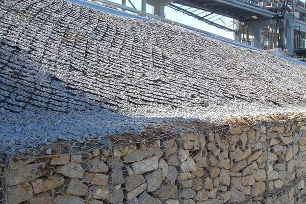 Los gaviones de malla hexagonal de doble torsión son jaulas rectangulares fabricadas con malla de alambre hexagonal de doble torsión y rellenas con rocas o piedras de cantera del tamaño adecuado. Los gaviones constituyen un método consolidado, robusto y técnicamente probado para el control de la erosión y la retención de tierras. La resistencia de los gaviones se deriva de una malla hexagonal de alambre de acero de doble torsión. En caso de daño accidental o rotura de uno o más alambres, la configuración de alambre de doble torsión garantiza una reducción mínima de la resistencia.